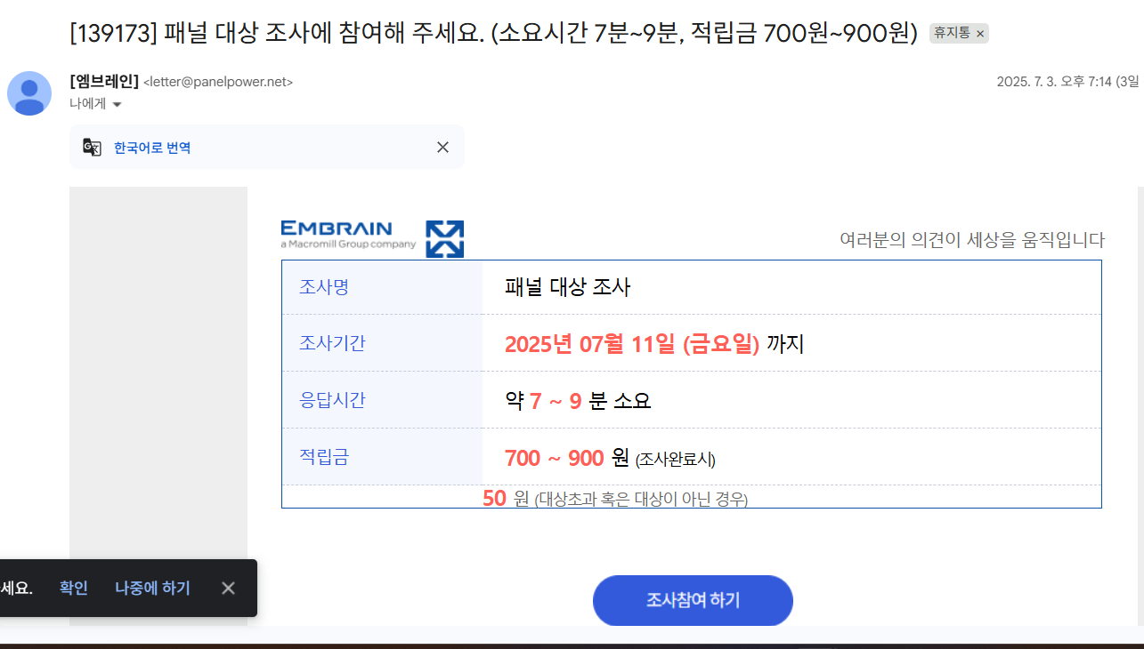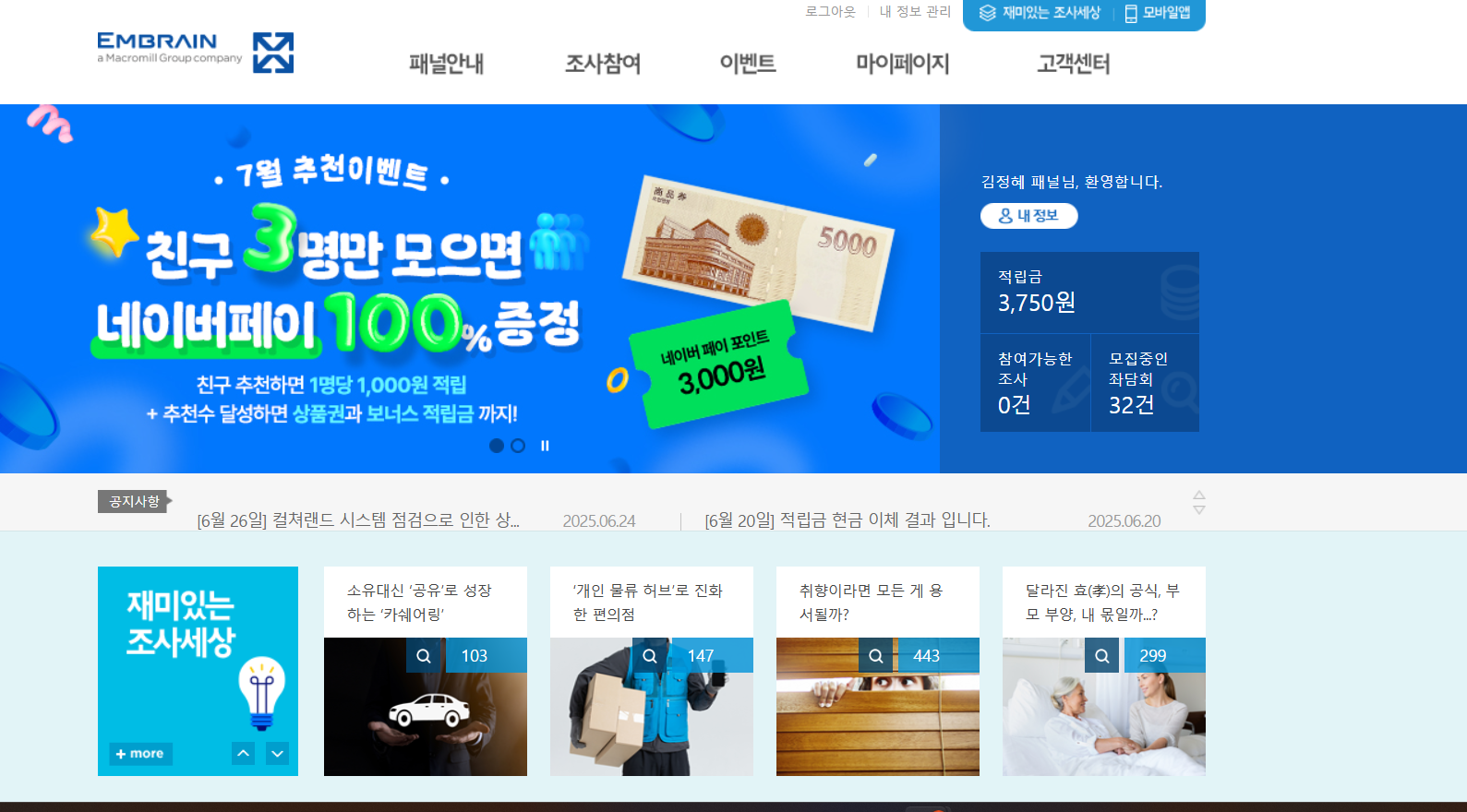 그중 패널파워 설문조사알바는 엠브레인에서 운영하는 신뢰도 높은 서비스로,